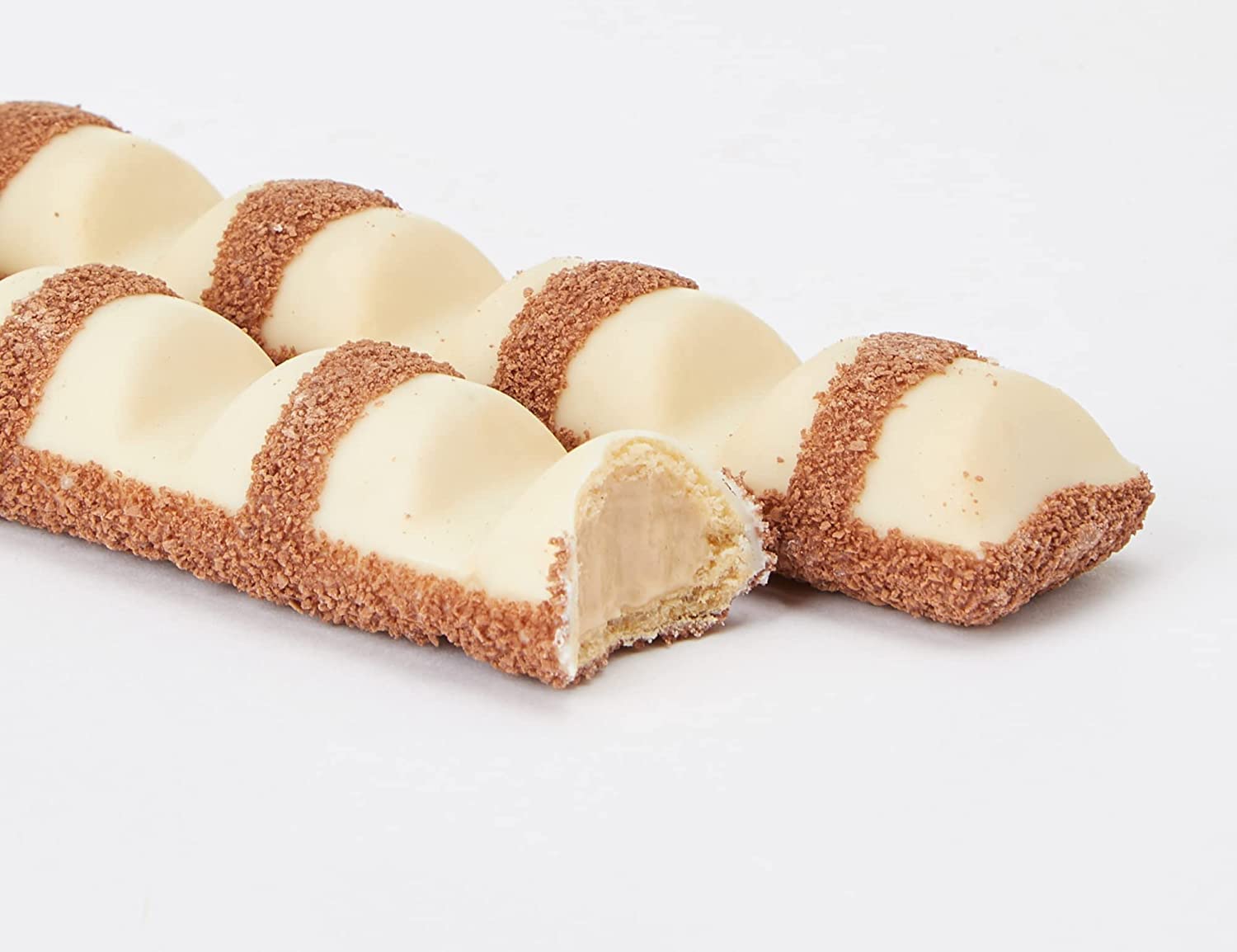 White chocolate covered wafer with smooth milky and hazelnut filling