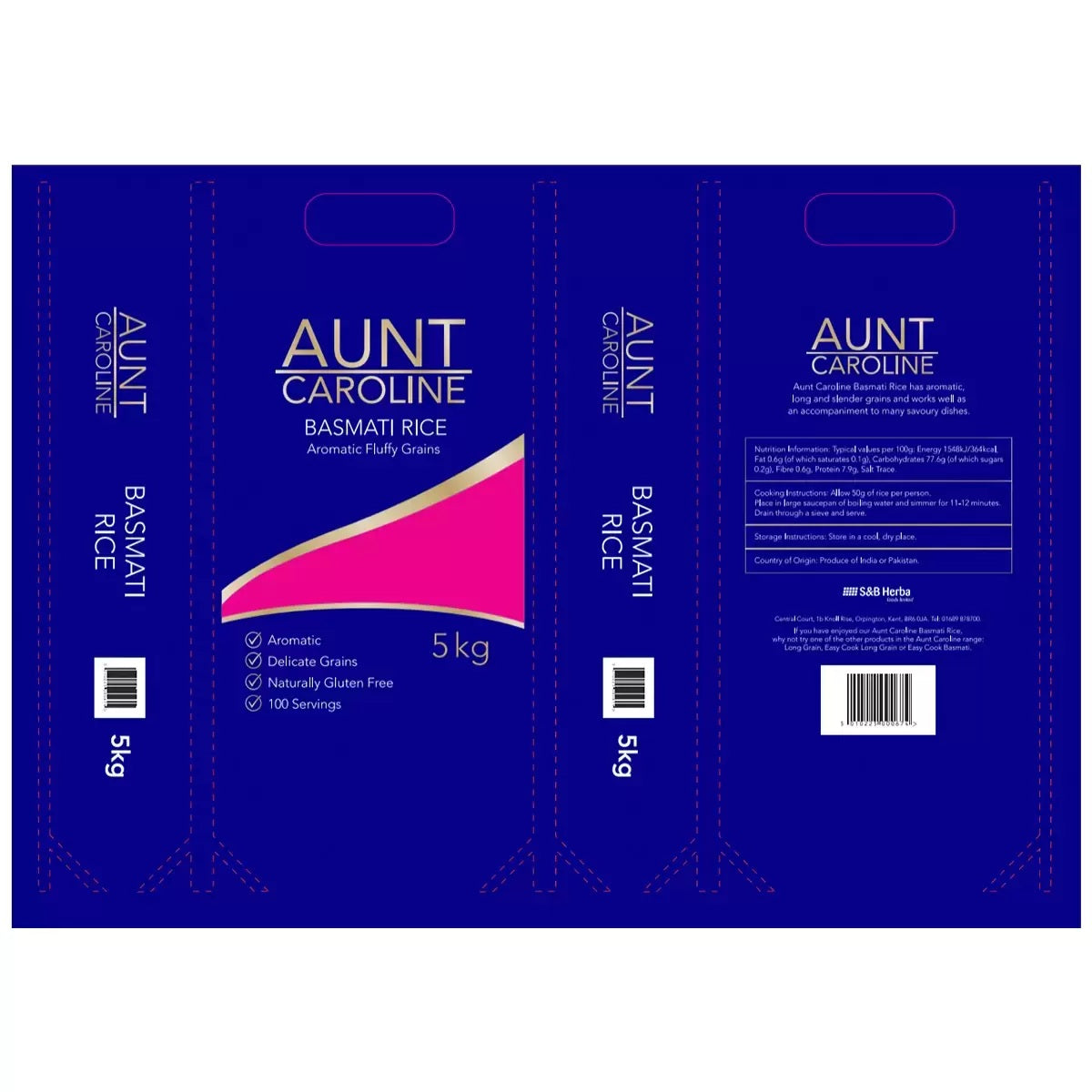 Buy Aunt Caroline Basmati Rice 5kg — premium long-grain basmati with a delicate aroma and fluffy texture. Perfect for biryani, pilau, curries, and everyday family meals. High quality, great value bulk bag ideal for home kitchens and catering use.