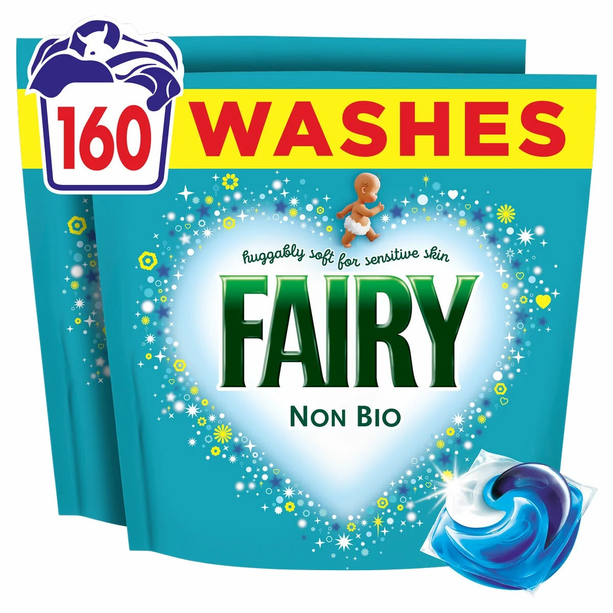 With up to 160 washes per pack, Fairy Non Bio Pods offer long-lasting value and convenience for busy households.
