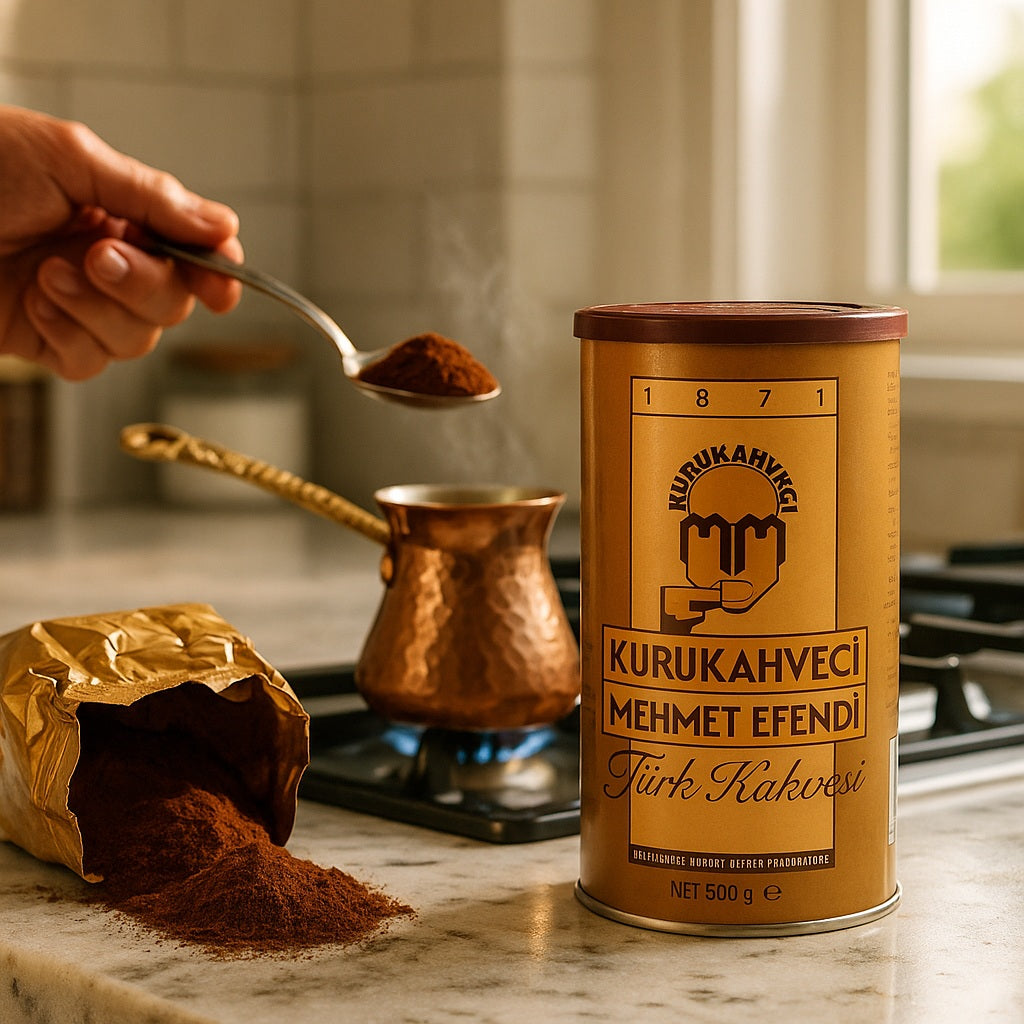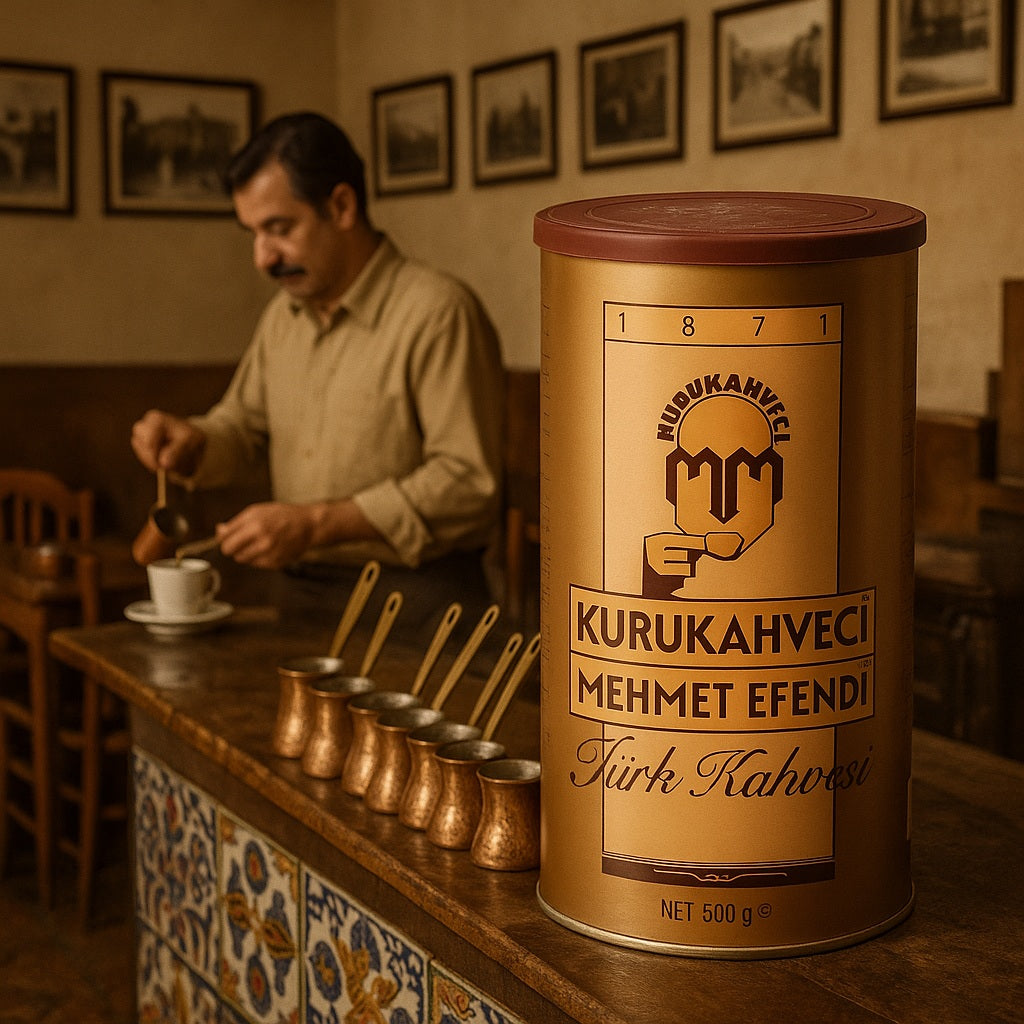 The packaging is durable and airtight, ensuring long-lasting freshness. Its classic design features the iconic Kurukahveci Mehmet Efendi logo—a symbol that is instantly recognized across Türkiye and around the world. Suitable for daily home brewing, ceremonial servings, or professional café use, this 500g size offers excellent value without compromising quality.