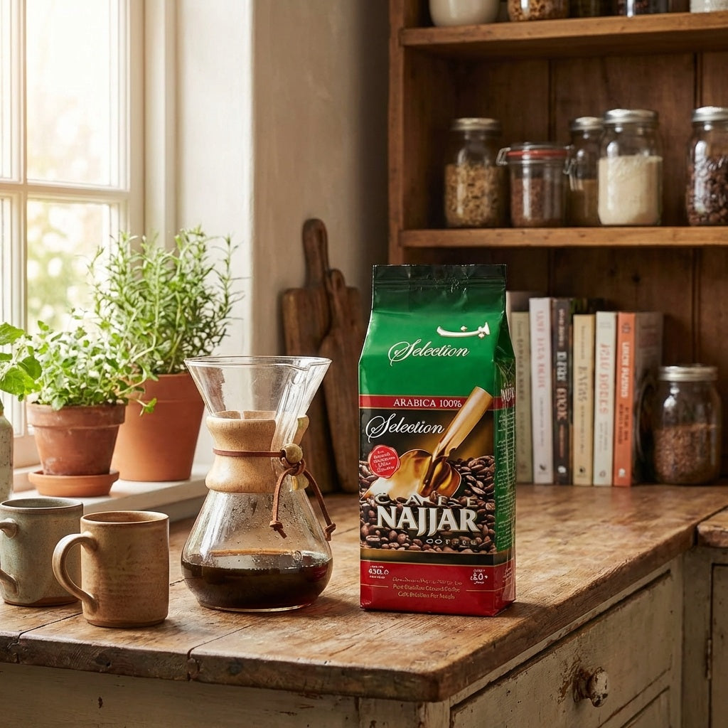 Najjar Coffee with Cardamom is a popular blend of coffee enjoyed in many parts of the Middle East, particularly Lebanon. It combines the robust flavours of traditional Lebanese coffee with the warm, aromatic spice of cardamom, creating a unique and flavourful experience.