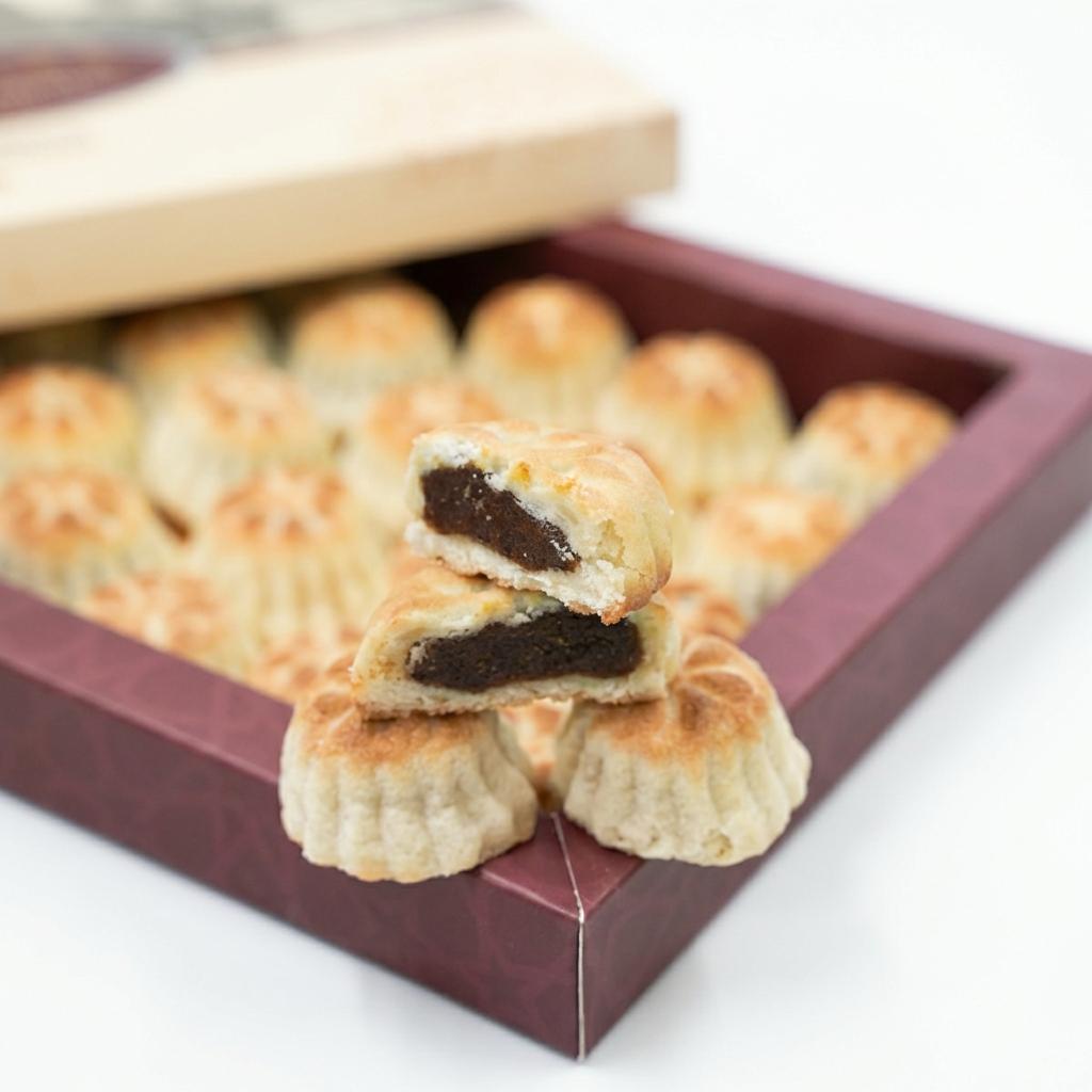 Each bite of this luxurious Maamoul offers a delightful contrast of tender pastry and sweet dates, making it a perfect treat for special occasions, gifting, or enjoying with tea or coffee.