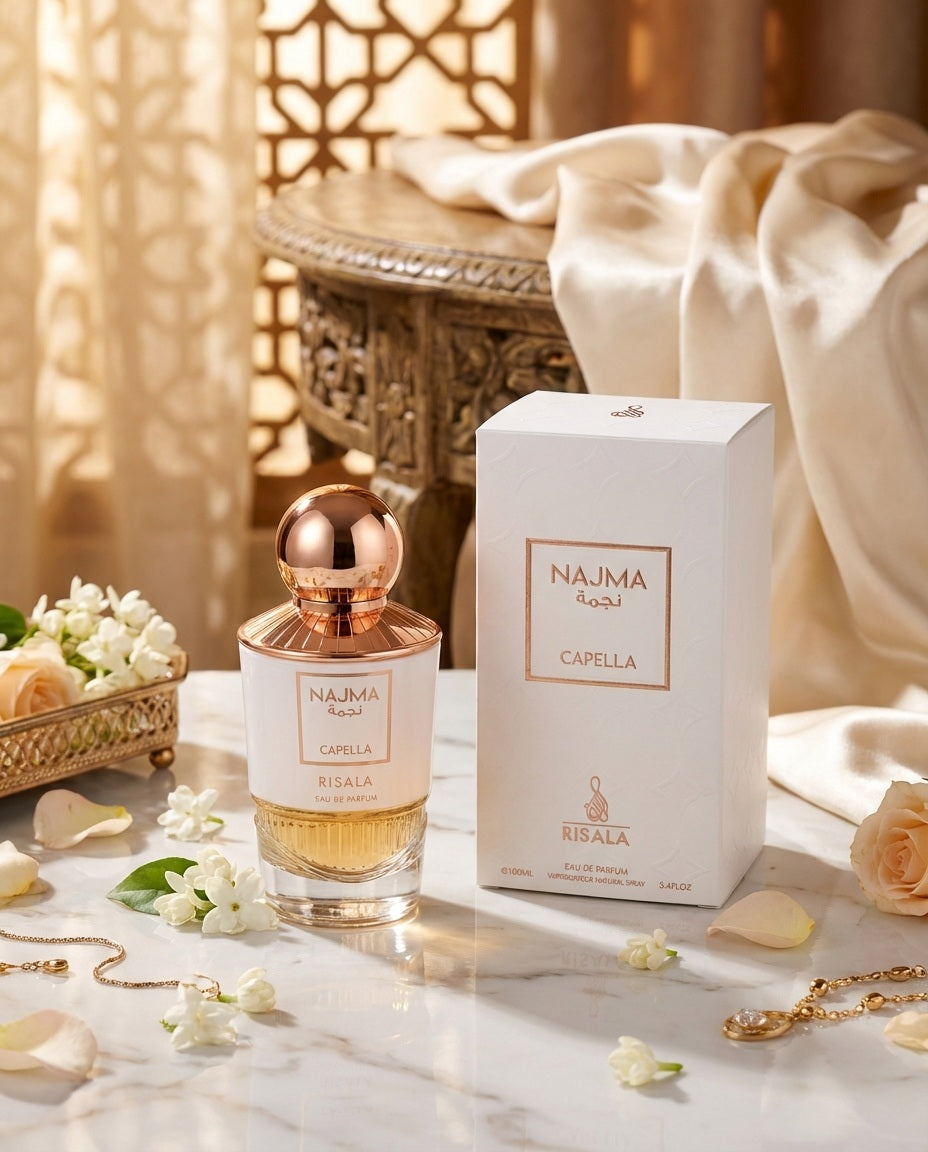 Najma Capella Eau De Parfum 100ml by Risala – Warm Amber Floral Oriental Fragrance