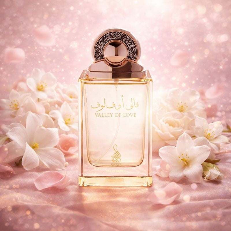 Experience the enchanting beauty of Risala Valley of Love, a luxurious Eau De Parfum crafted to express romance, passion, and softness. This elegant fragrance opens with luminous fruity and floral accords that instantly captivate the senses. The heart unfolds into delicate white florals blended with creamy sweetness, creating a sensual and feminine aura. As it dries down, warm vanilla, soft musk, and smooth amber leave a long-lasting and comforting trail. Perfect for daily wear, special evenings, and romantic moments, Valley of Love embodies tenderness wrapped in oriental luxury.